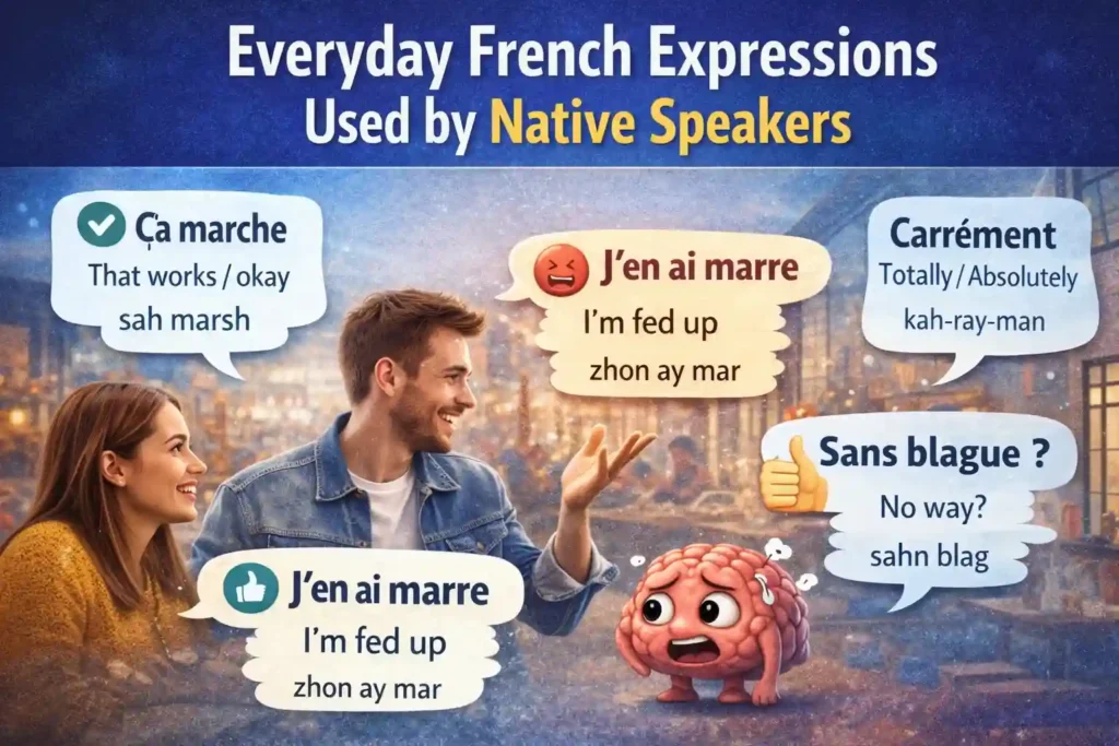 Common French expressions are fixed phrases native speakers use automatically in daily conversations. They don’t always translate word for word, and that’s exactly why learners struggle with them.