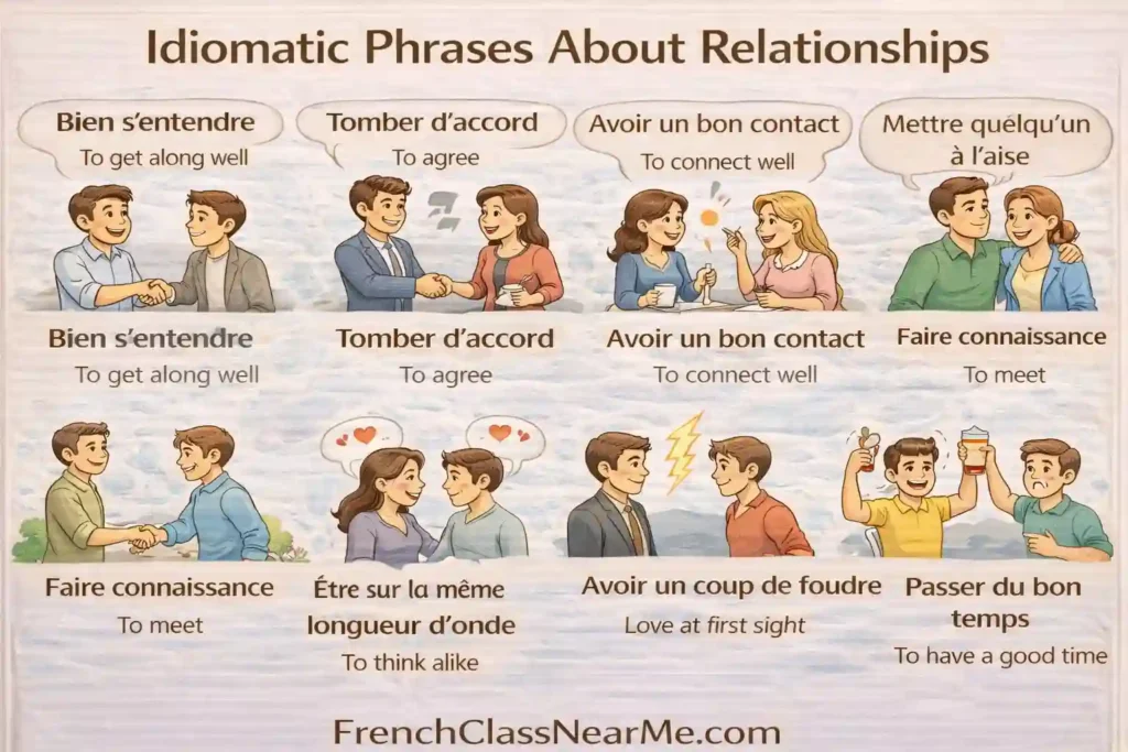 French idiomatic phrases are fixed expressions whose meanings cannot be understood word-for-word. If you translate them literally, you often get something strange or funny. Native speakers don’t think about these expressions; they use them automatically in conversation, at work, with friends, and even in formal settings.